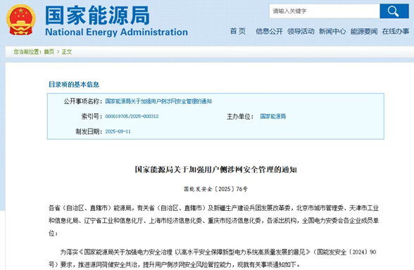 近日,國家能源局綜合司發(fā)布《關(guān)于加強用戶側(cè)涉網(wǎng)安全管理的通知》(以下簡稱《通知》),從國家層面系統(tǒng)構(gòu)建了用戶側(cè)涉網(wǎng)安全管理的頂層設(shè)計和全鏈條管理體系?!锻ㄖ分兄赋鲇脩魝?cè)涉網(wǎng)安全管理的總體要求,明確各相關(guān)主體的權(quán)責范圍,推動用戶側(cè)涉網(wǎng)安全管理邁入制度化、協(xié)同化和精細化管理的階段。
