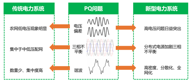另外,隨著大量電力電子設(shè)備、新能源發(fā)電設(shè)備以及電動汽車充電設(shè)施的接入,電網(wǎng)中的諧波、電壓波動、閃變、三相不平衡等電能質(zhì)量問題日益突出。