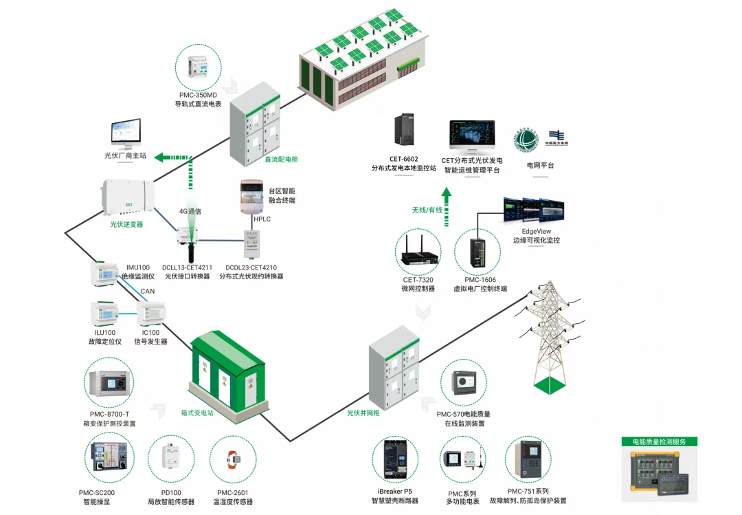 為響應《通知》指出的提升光伏“四可”能力,CET中電技術(shù)推出工商業(yè)分布式光伏并網(wǎng)四可解決方案,將逆變器的電壓、電流、發(fā)電量、功率因數(shù)等數(shù)據(jù)采集上傳至云端,通過柔性調(diào)控+就地監(jiān)控+云上運維,實現(xiàn)分布式光伏全生命周期運維管理,響應分布式光伏數(shù)據(jù)的可觀、可測,發(fā)電可調(diào)、可控,為新型電力系統(tǒng)建設(shè)保駕護航。
