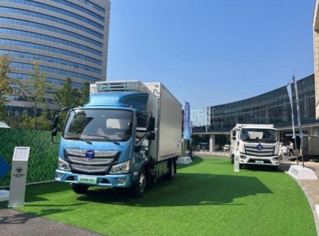 北汽集團(tuán)旗下北汽福田攜最新研發(fā)的氫燃料電池冷藏車、氫燃料電池環(huán)衛(wèi)專用車產(chǎn)品亮相會(huì)場(chǎng)。