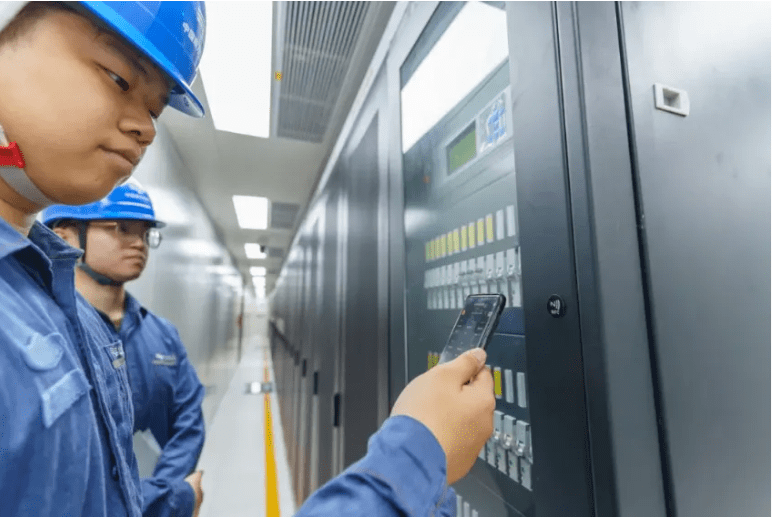 深圳供電局基于開(kāi)源鴻蒙自主研制通信機(jī)房數(shù)智運(yùn)維系統(tǒng),提高了機(jī)房智能管理水平。圖為供電人員使用鴻蒙手機(jī)“碰一碰”機(jī)房設(shè)備,就能掌握該設(shè)備實(shí)時(shí)數(shù)據(jù)。(黃海鵬攝)