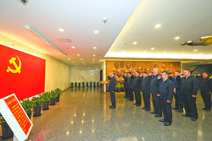今年是中國共產(chǎn)黨成立100周年,百年征程波瀾壯闊,百年初心歷久彌堅(jiān)。上海石庫門承載了共產(chǎn)黨人的夢想起航,見證著中華民族的偉大復(fù)興。上午,辛保安一行來到位于興業(yè)路76號的中共一大會址紀(jì)念館,瞻仰了中共一大會議室原址,參觀了中國共產(chǎn)黨創(chuàng)建歷史陳列。在宣誓廳,辛保安帶領(lǐng)黨員同志一起重溫入黨誓詞。辛保安表示,來到中國共產(chǎn)黨人的精神家園,接受革命傳統(tǒng)教育,重溫黨的光輝歷程,學(xué)習(xí)革命先輩的崇高精神,備受鼓舞,倍感振奮。我們必須始終堅(jiān)定理想信念,以昂揚(yáng)的奮斗姿態(tài),把黨的電力事業(yè)不斷推向前進(jìn)。他指出,上海電力的歷史是一部流淌著紅色基因的斗爭史和發(fā)展史,一代代電力人為實(shí)現(xiàn)黨的理想不懈斗爭、矢志追求,留下了寶貴的精神財富,我們要不斷發(fā)揚(yáng)光大、永遠(yuǎn)傳承下去。他勉勵在場的共產(chǎn)黨員服務(wù)隊(duì)隊(duì)員百尺竿頭更進(jìn)一步,用心用情做好服務(wù),以實(shí)際行動詮釋共產(chǎn)黨人的初心本色,架起黨聯(lián)系人民群眾的“連心橋”。