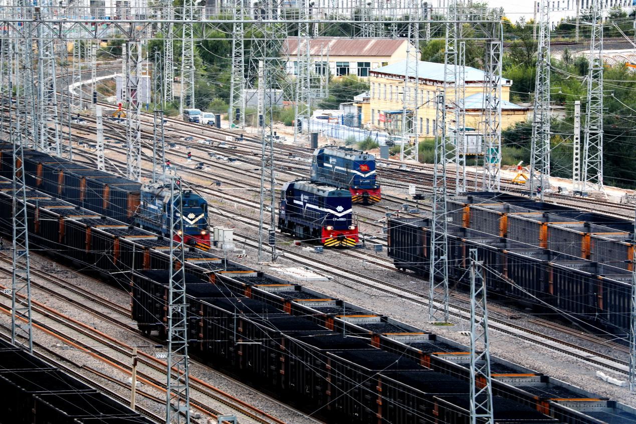 新朔鐵路宏河物流園區(qū)內(nèi)列車正在進(jìn)行裝車作業(yè)
