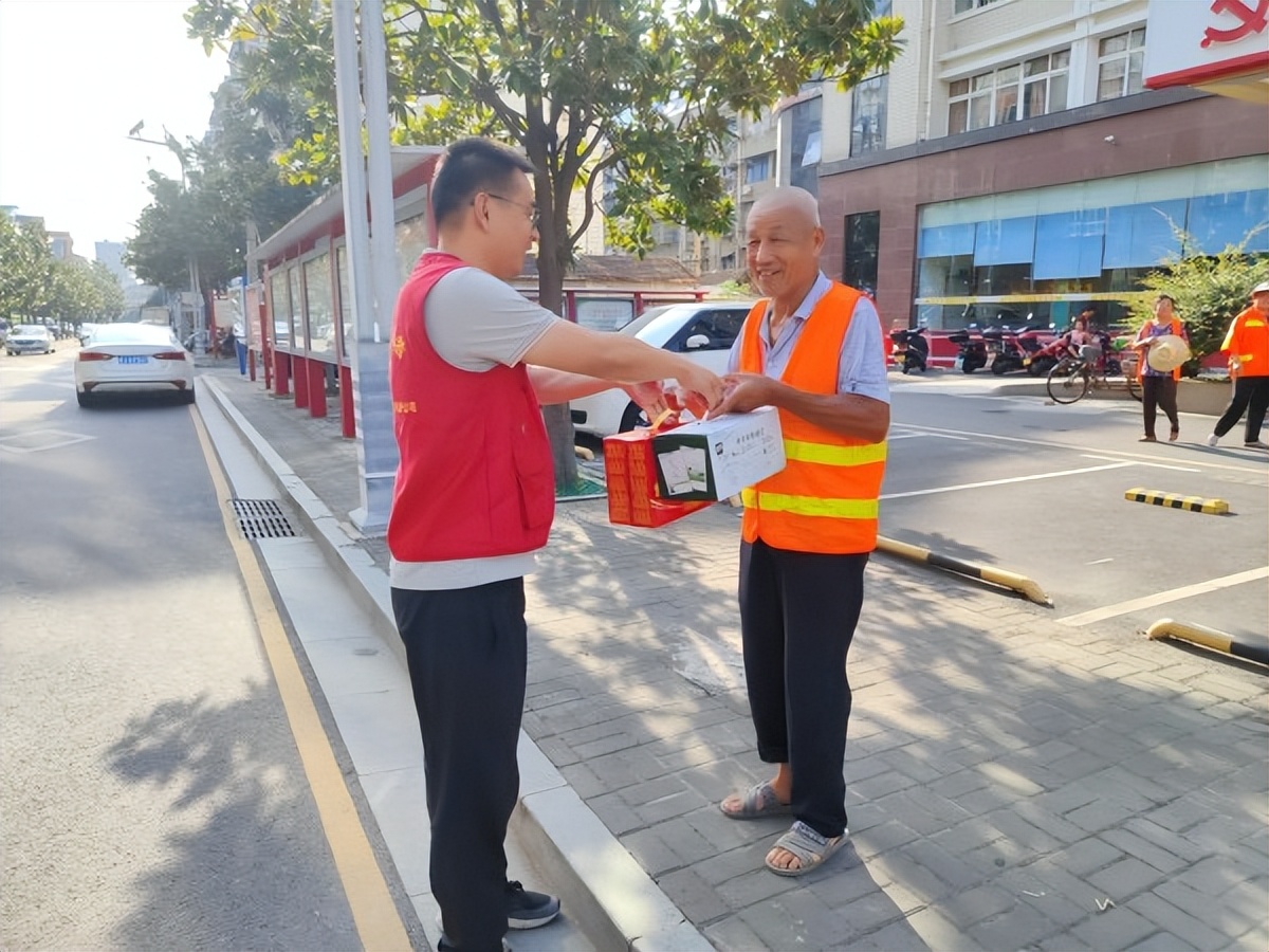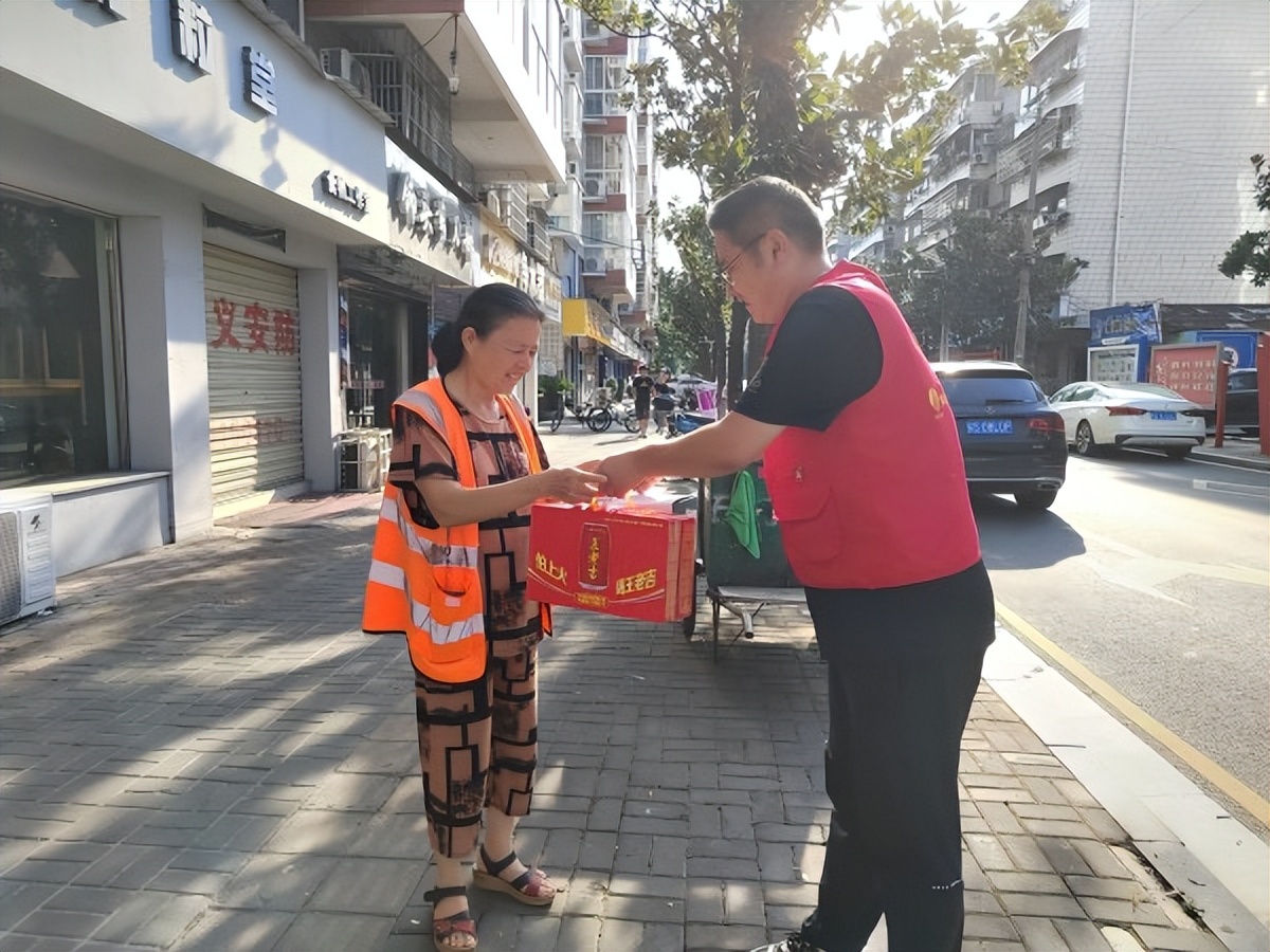 活動(dòng)中,志愿者們首先對(duì)他們不畏高溫天氣,仍然堅(jiān)守崗位工作、默默付出致以誠(chéng)摯的敬意和感謝。隨后,將牛奶、涼茶、礦泉水等慰問(wèn)物資送到一線環(huán)衛(wèi)工作人員手中,同時(shí)囑咐大家要提高自保互保意識(shí),做好防暑降溫措施,確保勞逸結(jié)合、身體康健。此次活動(dòng),讓堅(jiān)守在烈日與高溫下的環(huán)衛(wèi)工人們感受到夏日的絲絲清涼。