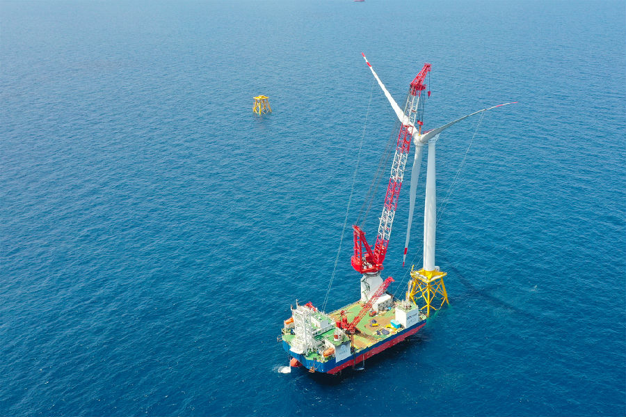 國(guó)內(nèi)首個(gè)近海深水區(qū)海上風(fēng)電項(xiàng)目完成首臺(tái)風(fēng)機(jī)吊裝