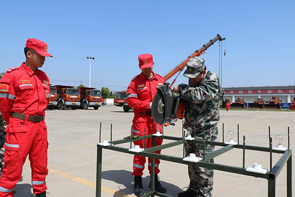 應(yīng)急救援專項培訓(xùn)堅持黨建引領(lǐng)、使命驅(qū)動、強能為要,突出“練技能、練作風(fēng)、練意志”,組織參觀了訓(xùn)練基地,觀摩了中國安能搶險隊員專業(yè)訓(xùn)練,在氛圍感召、對標(biāo)找差中催生動力、昂揚狀態(tài)。設(shè)置了以海姆立克法、滅火器使用方法、簡易擔(dān)架制作等為主的應(yīng)急救援基礎(chǔ)科目,以龍吸水操作、液壓切割機精準(zhǔn)操作、挖掘機推小球訓(xùn)練等為主的專業(yè)裝備訓(xùn)練科目以及錘煉學(xué)員精神作風(fēng)的單個軍人隊列訓(xùn)練科目。訓(xùn)練過程中,基地教練員認(rèn)真負(fù)責(zé),以深厚的理論功底和精細(xì)的專業(yè)技術(shù)水平傳授了學(xué)員大量應(yīng)急救援知識和實操經(jīng)驗,在錘煉了學(xué)員作風(fēng)的同時也進一步強化了學(xué)員的應(yīng)急處置能力,得到了省人防參訓(xùn)學(xué)員的一致好評。