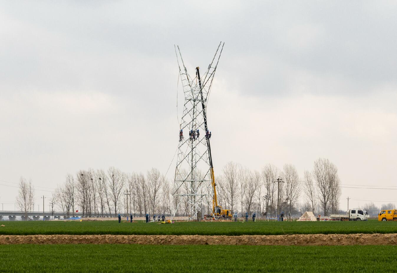 3月12日,在河南滑縣白道口鎮(zhèn)后吾旺村,太陽(yáng)剛出來(lái),麥苗上還掛著晶瑩的露珠。走在麥隴間有種踏春的喜悅,露珠也瞬間浸透了腳上的鞋。看向那邊卻是另一番景象,新建220千伏電力線路跨越高鐵工程正在緊張實(shí)施中。現(xiàn)場(chǎng)國(guó)網(wǎng)滑縣供電公司的施工人員,早已開(kāi)始了組立鄭濟(jì)鐵路(滑縣段)第75號(hào)鐵塔,等76號(hào)鐵塔也組裝完后,73號(hào)鐵塔與76號(hào)鐵塔導(dǎo)線放通,鄭濟(jì)鐵路(滑縣段)全線路貫通。為下一步鄭濟(jì)高鐵聯(lián)調(diào)聯(lián)試、試車及最后投入運(yùn)營(yíng)提供可靠電力支撐。