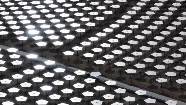 國(guó)內(nèi)在建單機(jī)規(guī)模最大的塔式光熱項(xiàng)目——甘肅阿克塞匯東新能源光熱+光伏試點(diǎn)項(xiàng)目11960面定日鏡全部安裝完成。阿克塞項(xiàng)目位于甘肅阿克塞哈薩克族自治縣千萬(wàn)千瓦級(jí)可再生能源多能互補(bǔ)基地,總裝機(jī)容量750MW,包括110MW光熱發(fā)電和640MW光伏發(fā)電,是國(guó)內(nèi)在建單機(jī)規(guī)模最大的塔式光熱項(xiàng)目,是國(guó)內(nèi)首批“光熱+光伏”試點(diǎn)項(xiàng)目。(新華社 記者:楊志剛)