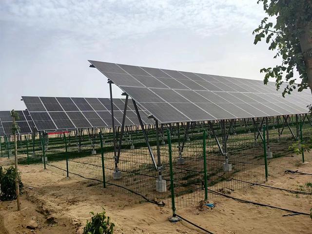 該項(xiàng)目在引用已經(jīng)示范驗(yàn)收的沙漠土壤化改造、旱生作物種植及改良、高效節(jié)水等現(xiàn)代農(nóng)業(yè)技術(shù)的基礎(chǔ)上,首次嘗試農(nóng)光互補(bǔ)的模式。