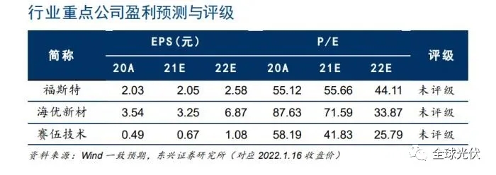 東興證券認(rèn)為,展望2022年,膠膜的年化產(chǎn)能遠(yuǎn)低于硅片、電池片等其他環(huán)節(jié),膠膜銷售價格有望持續(xù)堅(jiān)挺。隨著上游原材料供應(yīng)瓶頸得到緩解,成本端壓力有望得到釋放。膠膜行業(yè)的議價能力和盈利能力均有望在22年迎來拐點(diǎn)。長遠(yuǎn)來看,膠膜作為光伏組件的關(guān)鍵輔材之一,市場規(guī)模將持續(xù)擴(kuò)容,產(chǎn)品結(jié)構(gòu)將持續(xù)優(yōu)化,二線企業(yè)將迎來競爭洗牌的突圍機(jī)遇期。