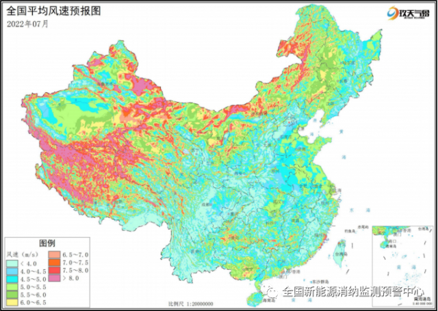 附圖1 全國2022年7月平均風(fēng)速分布預(yù)報(bào)圖