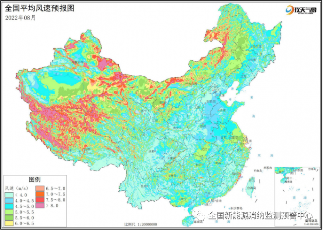 附圖3 全國2022年8月平均風(fēng)速分布預(yù)報(bào)圖