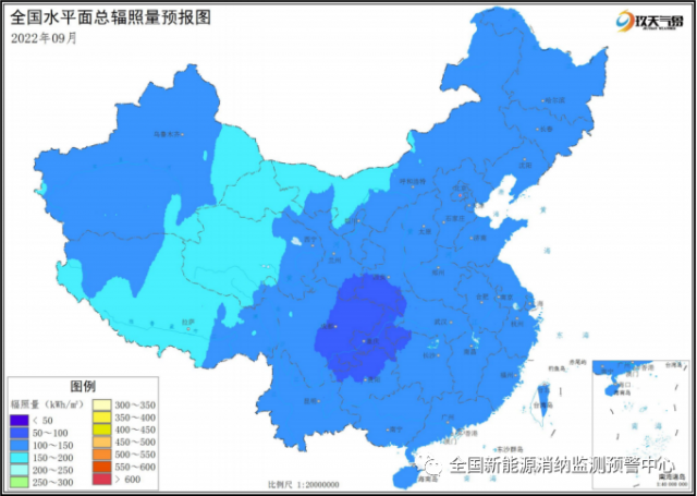 附圖6 全國2022年9月水平面總輻照量預(yù)報(bào)圖