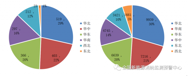 二季度各區(qū)域風(fēng)電新增(左)、累計(jì)(右)裝機(jī)(萬千瓦)