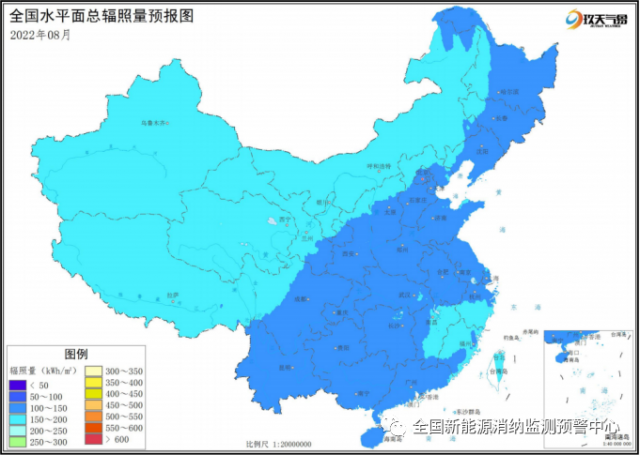 附圖4 全國2022年8月水平面總輻照量預(yù)報(bào)圖