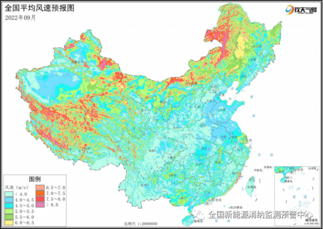 附圖5 全國2022年9月平均風(fēng)速分布預(yù)報(bào)圖