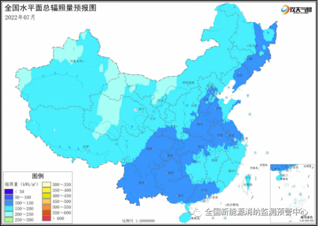 附圖2 全國2022年7月水平面總輻照量預(yù)報(bào)圖