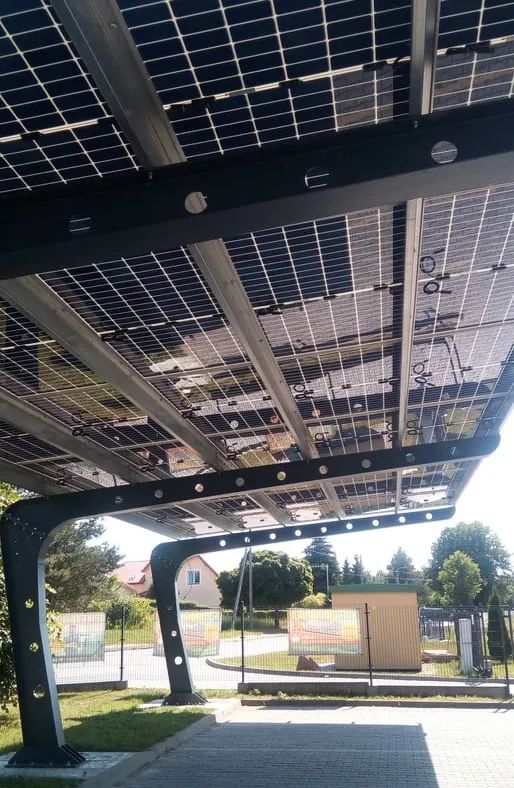 作為歐洲光伏需求旺盛的市場,波蘭早就將“光伏+車棚”滲透于應(yīng)用當(dāng)中,出現(xiàn)了一個個“綠色”車棚的身影。中來JW-HD144N高功率、高性價比的雙面組件替代了傳統(tǒng)車棚的膜結(jié)構(gòu)鋼頂,不僅可以遮風(fēng)擋雨、節(jié)能環(huán)保而且實用性強,深藍色的光伏電板在陽光下熠熠生輝,為當(dāng)?shù)卦鎏砹艘坏懒聋惖娘L(fēng)景。