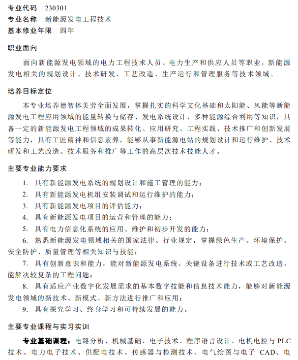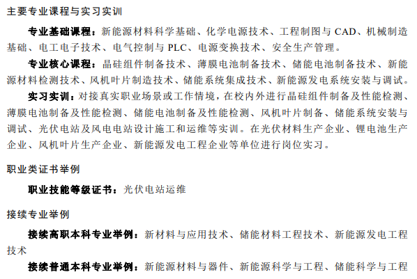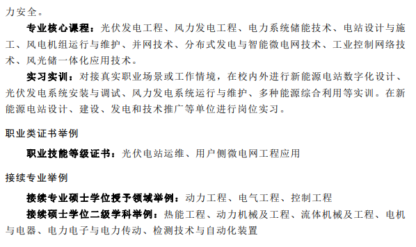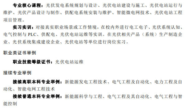 在中等職業(yè)教育、高等職業(yè)教育??茖I(yè)、高等職業(yè)教育本科專業(yè)的簡介中均包含光伏相關(guān)專業(yè),都同屬于能源動力與材料大類新能源發(fā)電工程類。