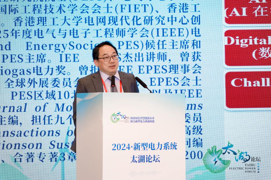 加拿大工程院院士、香港理工大學鐘志勇教授作了題為《智能電網(wǎng)技術(shù)革新:人工智能和數(shù)字孿生的新機遇與挑戰(zhàn)》的主旨報告