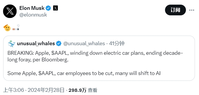 蘋(píng)果被曝已于周二宣布取消電動(dòng)車項(xiàng)目 2000名員工當(dāng)場(chǎng)驚呆