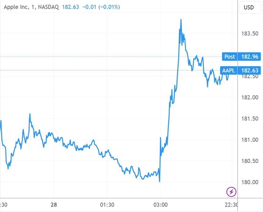 (蘋(píng)果公司分鐘線圖,來(lái)源:TradingView)