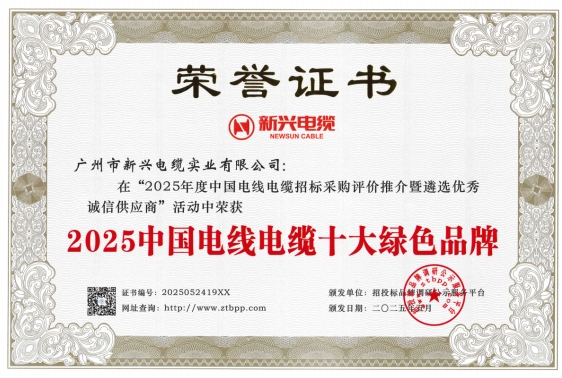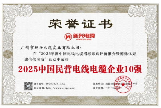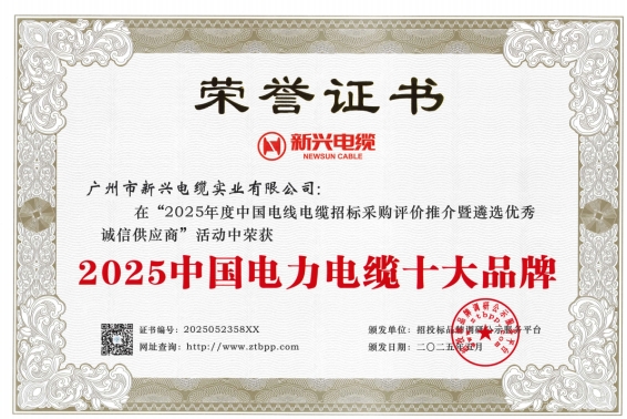 近日,在招投標(biāo)品牌調(diào)研公示服務(wù)平臺(tái)主辦的第四屆“2025年度中國(guó)電線電纜招標(biāo)采購評(píng)價(jià)推介暨遴選優(yōu)秀誠(chéng)信供應(yīng)商活動(dòng)”中,新興電纜憑借卓越的產(chǎn)品質(zhì)量和技術(shù)實(shí)力,獲得五項(xiàng)行業(yè)重要認(rèn)可:"2025中國(guó)電力電纜供應(yīng)商綜合實(shí)力50強(qiáng)"、"2025中國(guó)民營(yíng)電線電纜企業(yè)10強(qiáng)"、"2025中國(guó)電線電纜招標(biāo)采購十大推薦品牌"、"2025中國(guó)電力電纜十大品牌"和"2025中國(guó)電線電纜十大綠色品牌"。