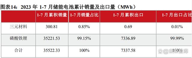 據(jù)中國汽車動力電池產(chǎn)業(yè)創(chuàng)新聯(lián)盟統(tǒng)計數(shù)據(jù),2023年1-7月,我國儲能電池累計銷量達35.5GWh。其中磷酸鐵鋰電池累計銷量35.2GWh,我國儲能電池累計出口達7.3GWh,其中磷酸鐵鋰電池累計出口7.3GWh。