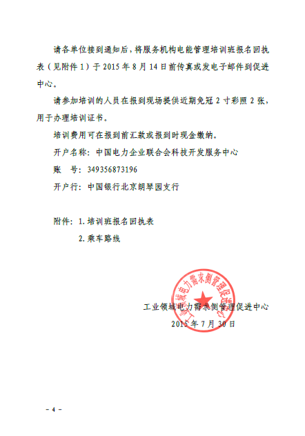 1、關(guān)于舉辦工業(yè)領(lǐng)域電力需求側(cè)管理服務(wù)機(jī)構(gòu)電能管理培訓(xùn)班通知(工電促[2015]8號)